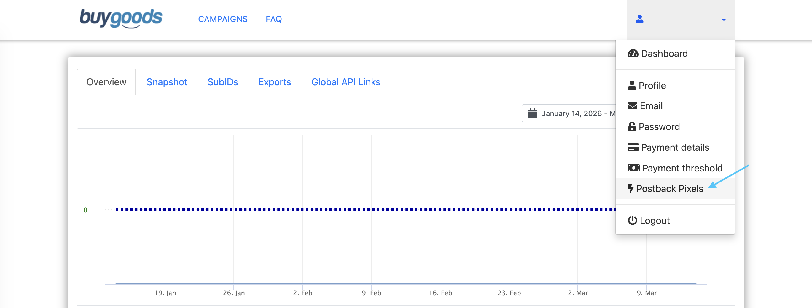 - Clique em Postback Pixels
