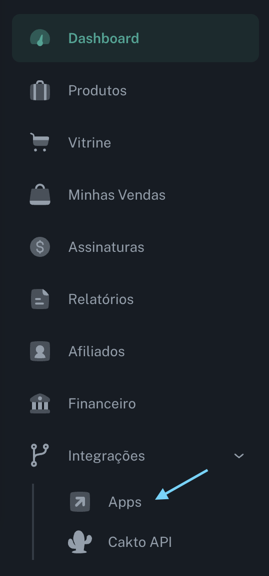 - No menu lateral, clique em Integrações → Apps
