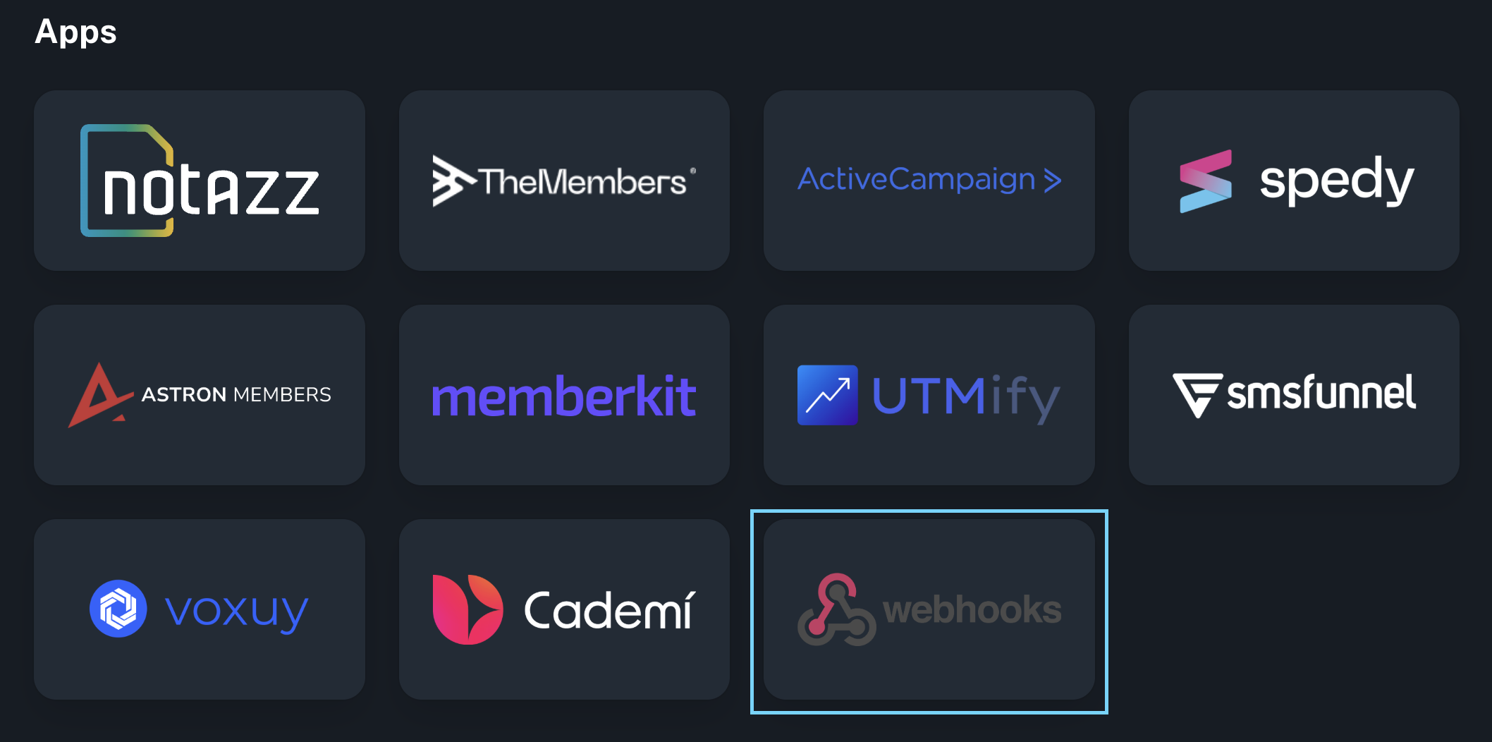 - Selecione Webhooks