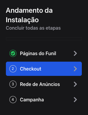 - No menu lateral, navegue até a seção Tracker e selecione Checkout