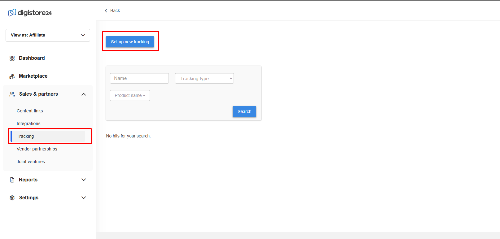 - No menu lateral, clique Sales & Partnes → Tracking -> Set up new tracking