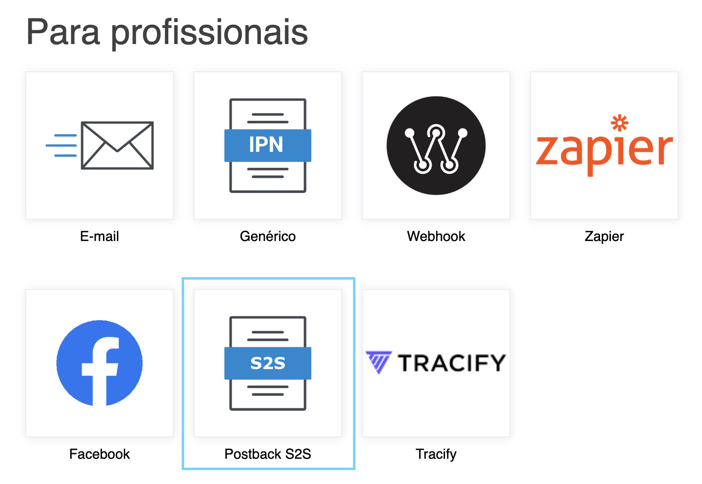 - Navegue até a seção "Para profissionais" e clique em Postback S2S