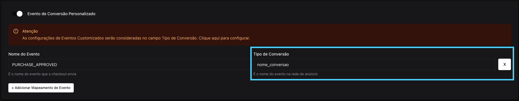 Observação: Se a conversão já existir na conta, ela será utilizada. Caso contrário, será criada automaticamente ao receber o primeiro postback.