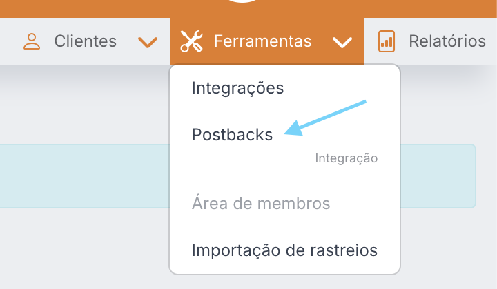 - No menu superior, clique em Ferramentas → Postbacks